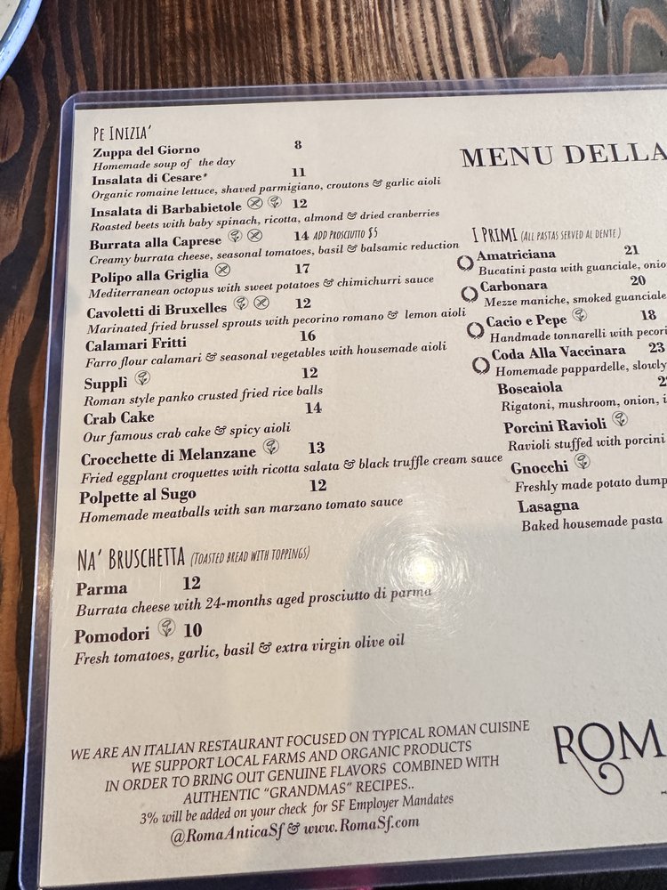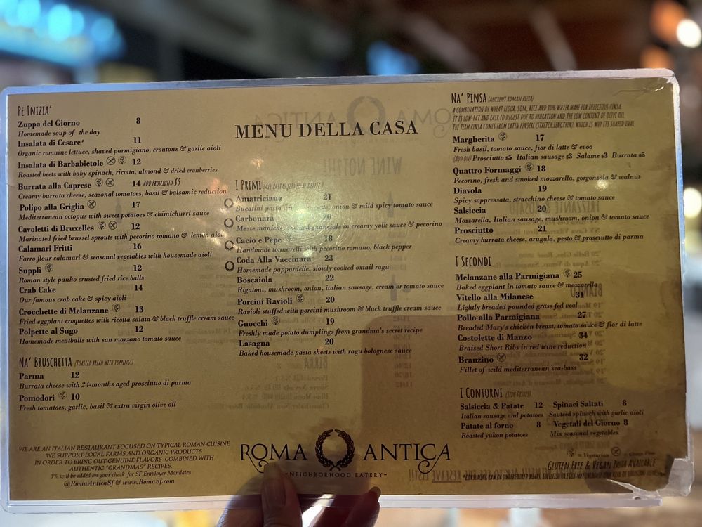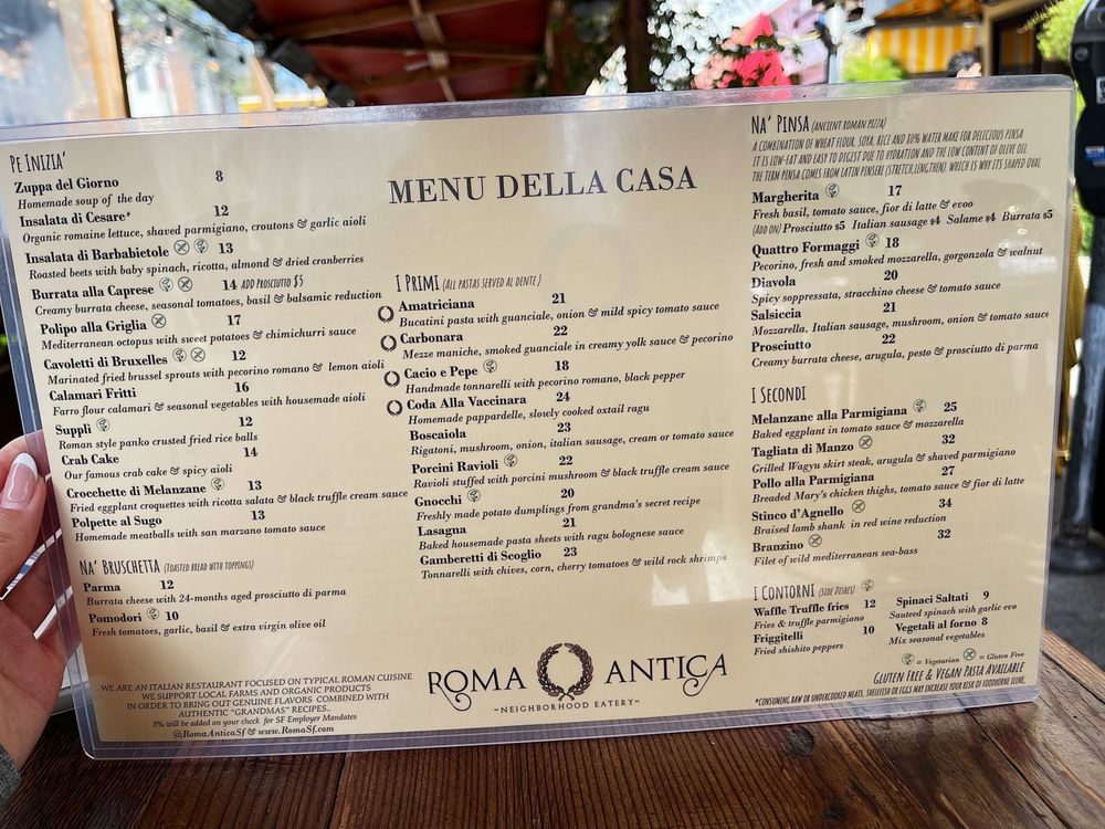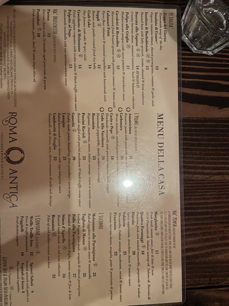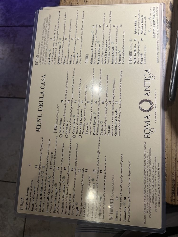 Introducing Roma Antica, a gem of an Italian restaurant located in San Francisco's Marina district. This pasta shop and pizzeria offers a classy yet casual dining experience with a touch of romance. The menu features a variety of traditional Italian dishes, with highlights such as the Polipo alla Griglia, Boscaiola pasta, and Prosciutto Pinsa. Customers rave about the fresh flavors, attentive service, and cozy ambiance. The staff, many of whom are native Italians, add to the authentic feel of the place. The pasta, cooked al dente, steals the show, while the pizzas are also top-notch. Don't miss out on their delectable desserts, like the Cheesecake del Giorno. Roma Antica is a must-visit spot for Italian food lovers in the Bay Area.